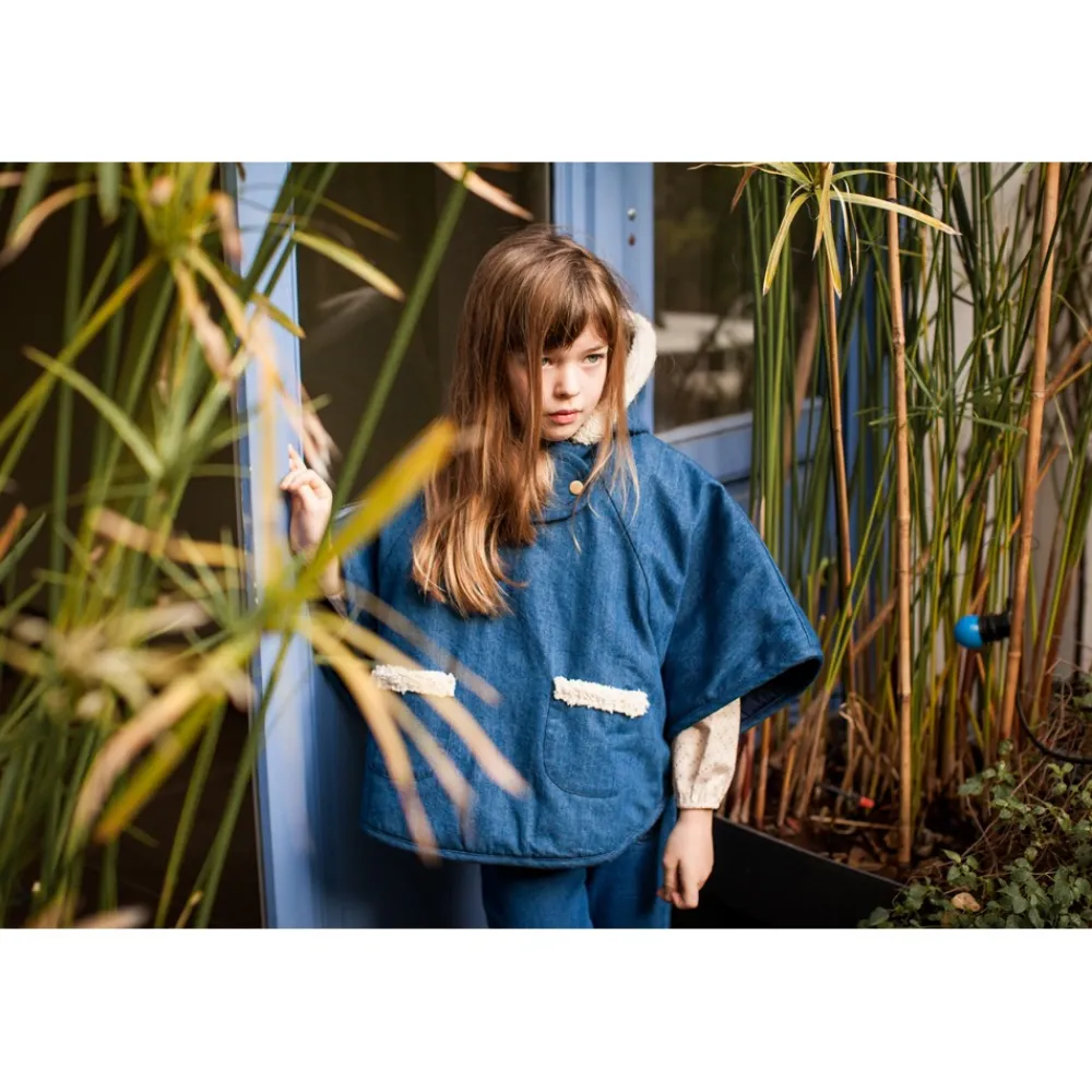 Matière : Denim matelassé.Détails : Cape avec capuche, bien chaude, entiérement matelassé, boutons pressions pour u…