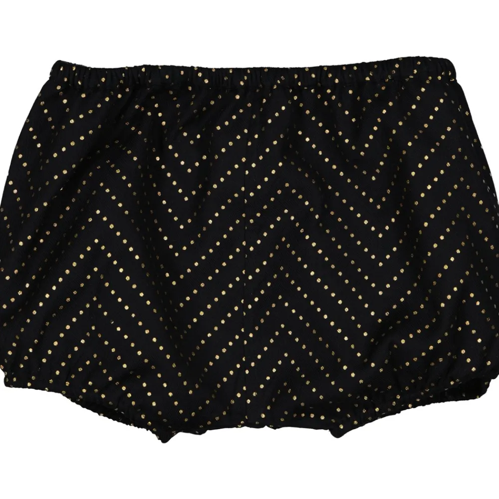 Matière : Twill imprimé pois doré.Détails : Elastiqué à la taille et aux cuisses. Facile à enfiler et tellement c…